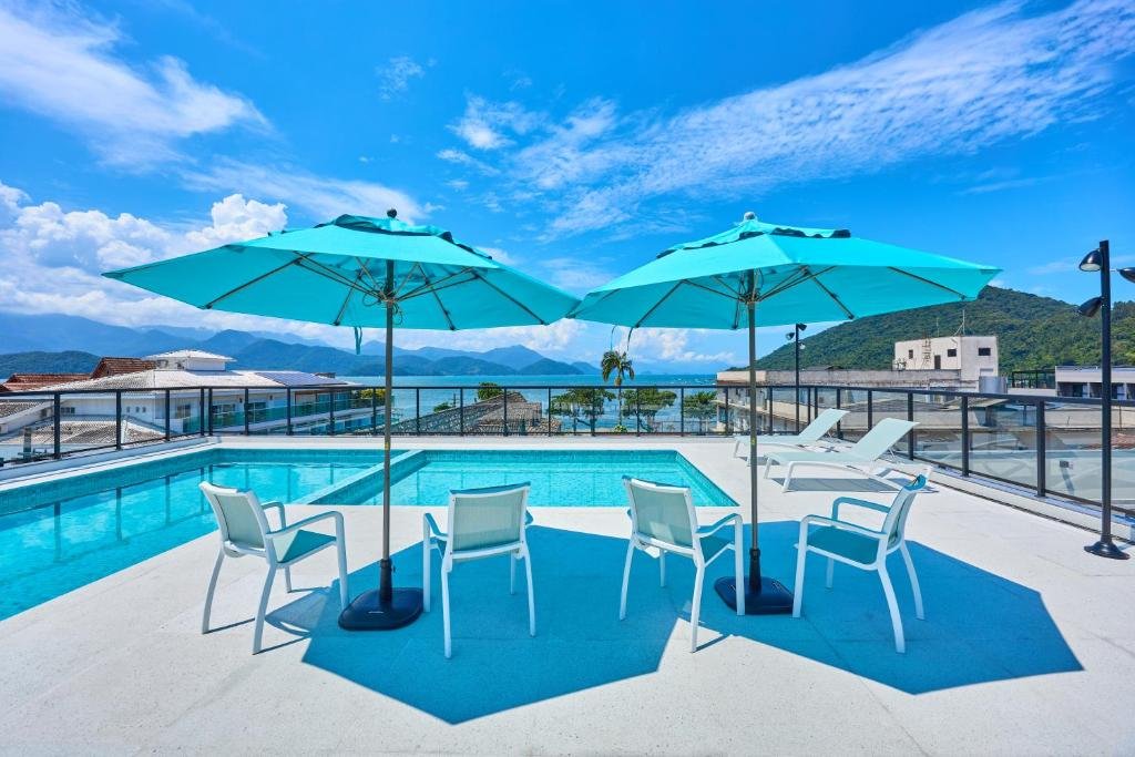 Localizada em área externa com vista para o mar e para a paisagem de Ubatuba, ela oferece um ambiente agradável para descansar após um dia de praia ou passeios pela região. O espaço costuma ser equipado com áreas de descanso ao redor, permitindo momentos de contemplação e tranquilidade.