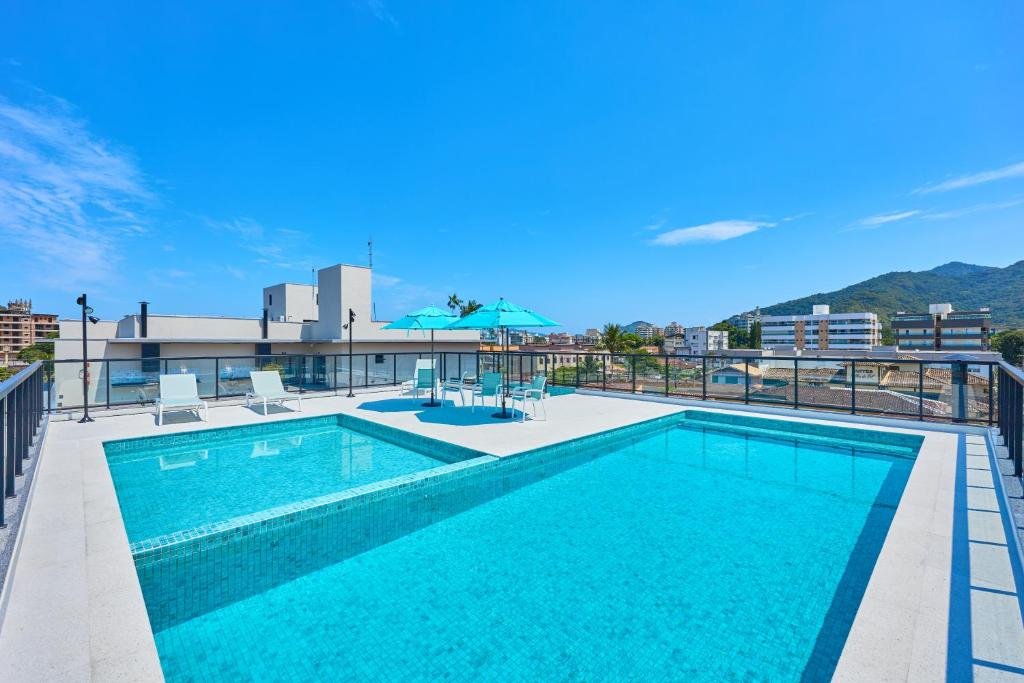Entre as principais estruturas de lazer e conveniência destacam-se piscina ao ar livre com vista para o oceano, terraço para descanso, áreas com churrasqueira, estacionamento privativo e acesso facilitado à orla.