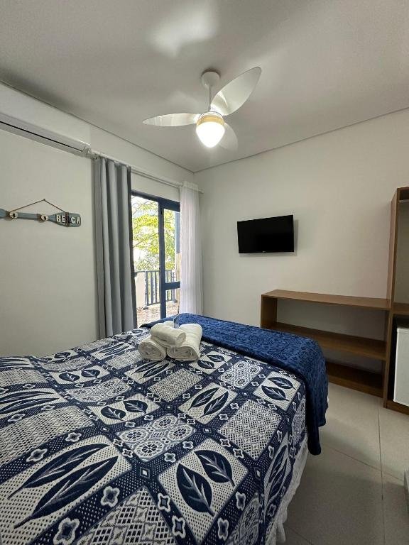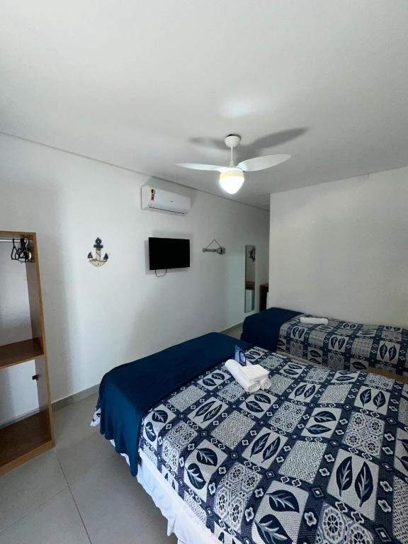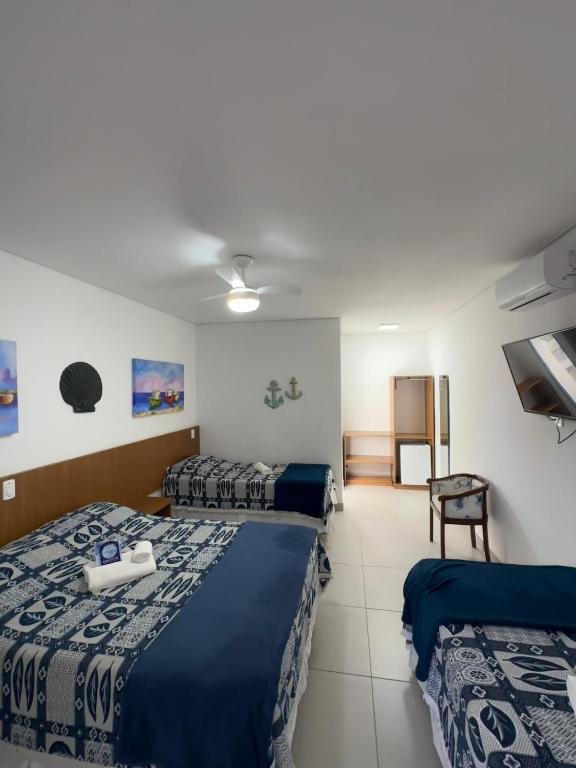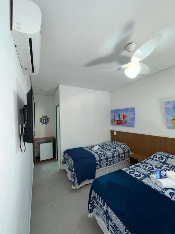 A Suíte Prime representa a categoria mais completa entre as acomodações do Brisa do Mar Barê Praia Hotel, oferecendo maior conforto para até 2 ou 3 hóspedes, ideal para casais que buscam uma estadia mais exclusiva. As unidades dispõem de ar-condicionado, ventilador, TV Smart, frigobar, armário e banheiro privativo com secador de cabelo, além de Wi-Fi. O espaço apresenta um ambiente moderno e bem organizado, com decoração leve e aconchegante.