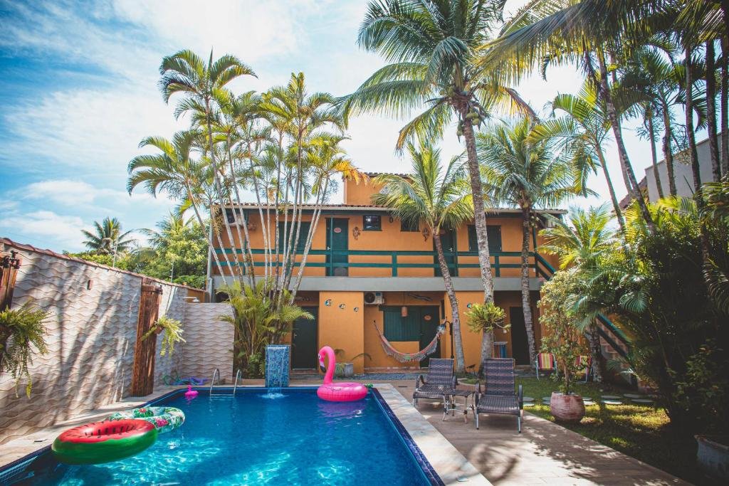 A piscina ao ar livre é uma das principais áreas de lazer da pousada e funciona como ponto de encontro e relaxamento para os hóspedes. O espaço costuma contar com espreguiçadeiras e área para descanso ao redor, permitindo aproveitar momentos de sol após passeios pela Praia de Pernambuco.