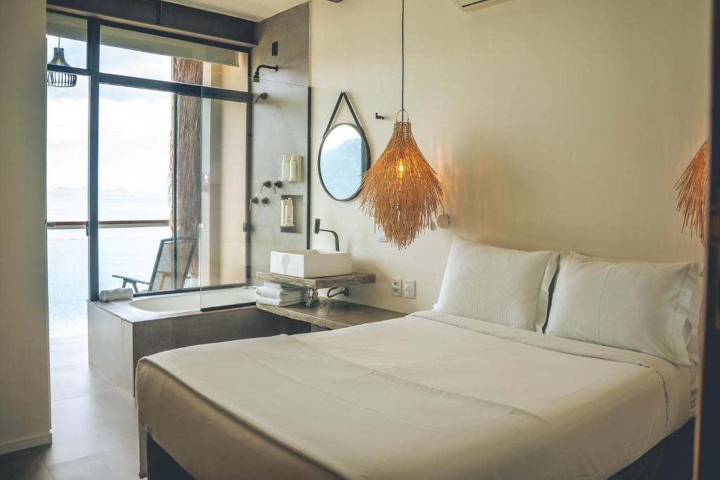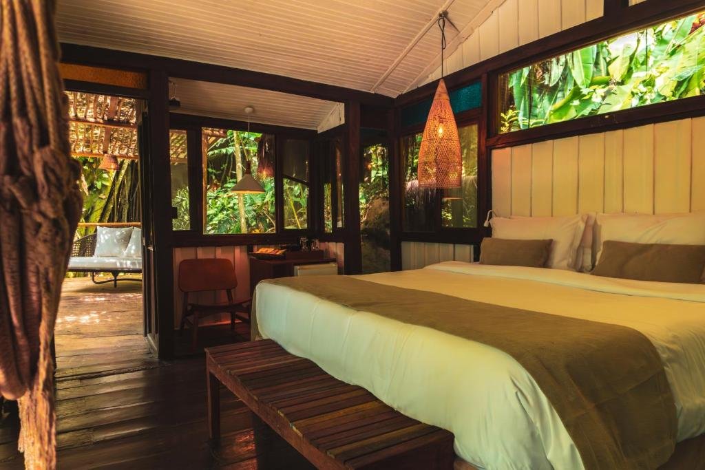 As acomodações variam entre suítes com vista para a mata ou para o mar, todas com varanda e estrutura confortável, proporcionando uma estadia acolhedora e integrada à paisagem costeira. A pousada oferece piscina ao ar livre com borda infinita, restaurante Pindorama com gastronomia brasileira feita com ingredientes locais e orgânicos, além de atividades como caiaque e stand-up paddle na praia privativa.