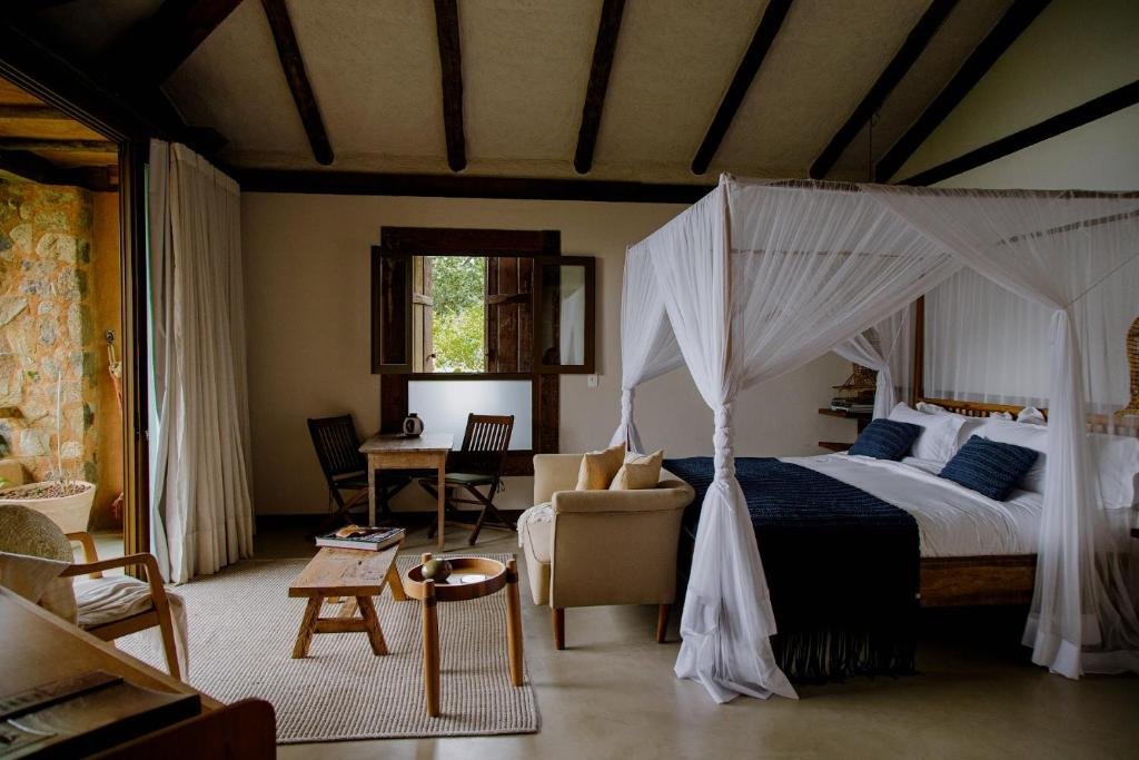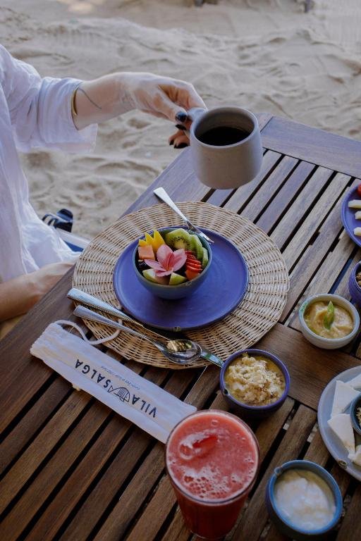 Os quartos da Casa Salga acomodam até 2 pessoas em camas king‑size e oferecem um ambiente acolhedor com design rústico e sustentável, integrando elementos da natureza local. Cada unidade dispõe de banheira externa no jardim privativo, perfeito para relaxar ao ar livre, além de ar‑condicionado, TV de tela plana, frigobar, mesa de trabalho e banheiro privativo. A varanda ou área externa convida a momentos tranquilos cercados pela Mata Atlântica. O café da manhã inclui opções à la carte e pode ser servido no quarto ou no restaurante pé na areia.