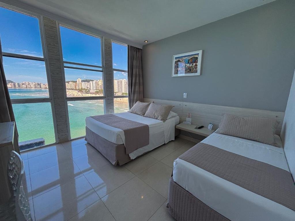 Suíte Classic Frente Mar Comfort Family / Comfort Triple Room Beach View – Espaço para até 3 hóspedes, com cama de casal e cama de solteiro, ar-condicionado, frigobar, TV e Wi-Fi. A vista para a praia acrescenta um diferencial ao conforto familiar, combinando funcionalidade e cenário litorâneo.
