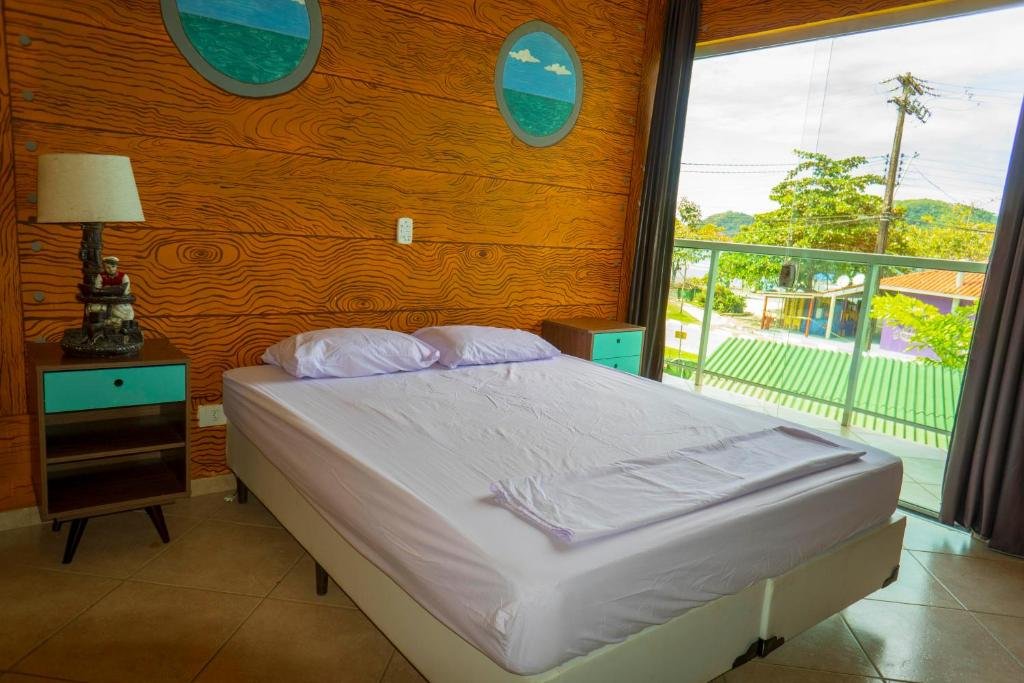 Dormitórios Compartilhados: O hostel oferece camas em dormitórios mistos ou femininos, ideais para 1 pessoa por cama, perfeitos para viajantes solos ou que desejam socializar. Esses dormitórios têm beliches com roupa de cama incluída, acesso a banheiros compartilhados e varandas com vista parcial, além de áreas comuns para integração com outros hóspedes. A atmosfera é animada, sendo uma opção econômica para quem quer aproveitar a localização beira-mar e o ambiente social do hostel, com acesso ao bar, áreas de lazer e eventos.