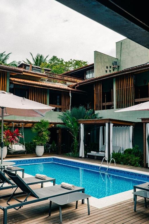 A área da piscina do Hiu Hotel foi projetada para proporcionar momentos de relaxamento em um ambiente elegante e tranquilo. Cercada por vegetação e com vista para áreas verdes, a piscina conta com gazebos, espreguiçadeiras e serviço de bar, permitindo que os hóspedes aproveitem drinks e petiscos enquanto descansam ao ar livre.