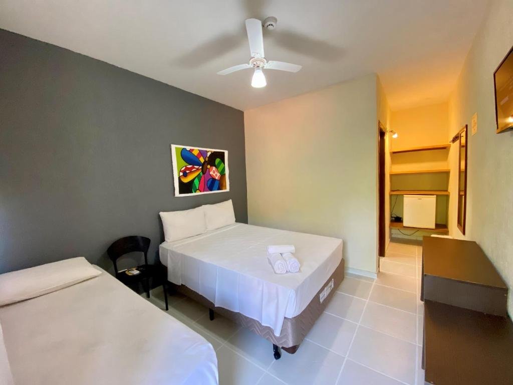 As acomodações são variadas, entre suítes, chalés e flats, todas com banheiro privativo, ar-condicionado, frigobar, TV e Wi-Fi. Há opções para casais, famílias maiores e também unidades adaptadas.