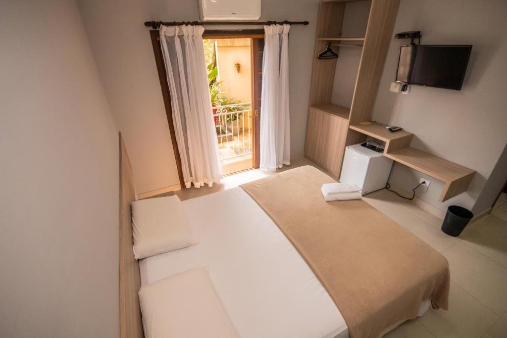 Os quartos da Categoria Luxo Casal acomodam até 2 hóspedes em cerca de 20 m², com cama king size, varanda com rede, ar-condicionado split, TV LCD com serviço a cabo, frigobar e secador de cabelos. Essa opção combina espaço extra e conforto superior, ideal para casais que desejam um ambiente mais espaçoso e equipado, mantendo fácil acesso à localização privilegiada do hotel.