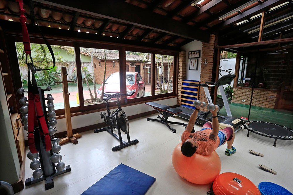 Para quem não abre mão da rotina de treinos mesmo durante as férias, o Giprita conta com um centro de fitness bem equipado, com aparelhos adequados para exercícios gerais de musculação e cardio. Esse espaço permite aos hóspedes manterem seus exercícios físicos diários, sendo uma ótima opção tanto para visitantes de longa estadia quanto para quem quer manter a forma enquanto aproveita Ubatuba.