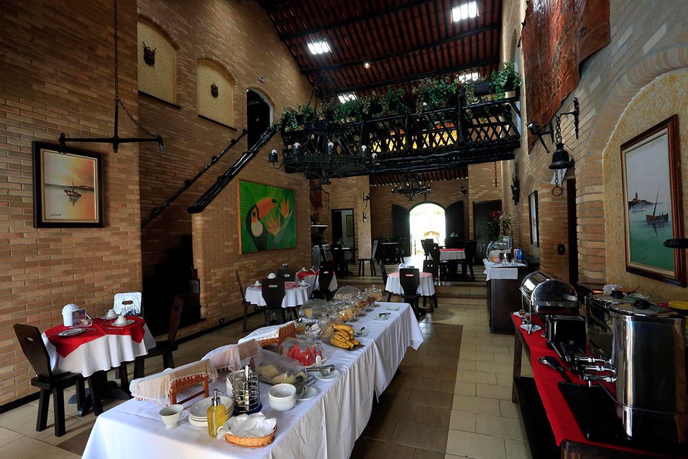 Oferece aos hóspedes um café da manhã incluso na diária, servido diariamente em um ambiente acolhedor e arejado, com algumas mesas de frente para a piscina, criando um começo de dia agradável e descontraído.