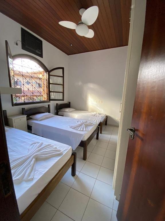O hotel também oferece quartos mais amplos que acomodam até 3 pessoas, ideais para pequenas famílias ou grupos de amigos. Essas unidades contam com combinações de cama de casal e cama extra (ou camas individuais), ar-condicionado, TV, banheiro privativo e Wi-Fi gratuito, além de opções com vista para o jardim, piscina ou pátio interno. Essa categoria combina espaço maior com a mesma praticidade das outras acomodações, sendo versátil para diferentes estilos de viagem.