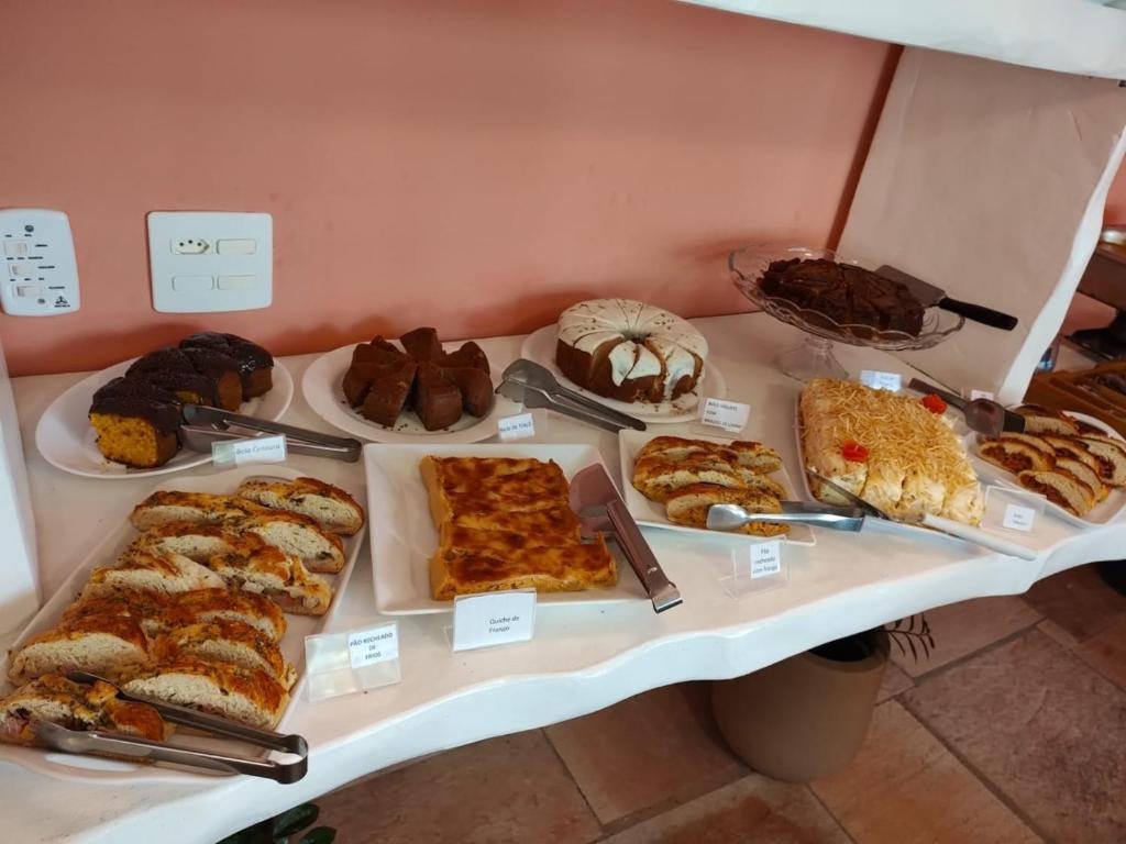 Entre os itens disponíveis, destacam-se pães frescos, bolos caseiros, frios, queijos, frutas da estação, cereais e iogurtes, além de bebidas como café, leite, chás e sucos naturais. Em alguns dias, preparações quentes simples, como ovos mexidos, complementam a oferta.