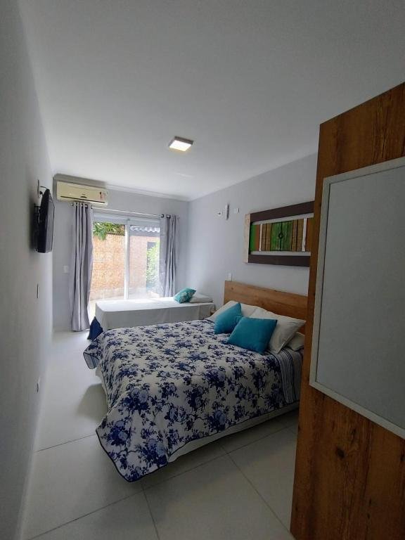 Indicado para até duas pessoas, dispõe de cama de casal, ar-condicionado, TV, Wi-Fi, frigobar e banheiro privativo. O ambiente é compacto e bem distribuído, ideal para casais que buscam praticidade e proximidade das praias, com conforto essencial após os passeios.