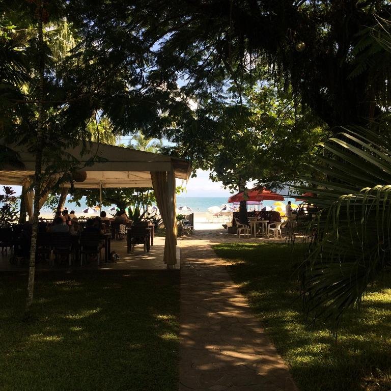O hotel também dispõe de uma área de jardim e espaços externos onde os hóspedes podem relaxar sentados, conversar ou simplesmente aproveitar o clima tropical de Ubatuba. Esses espaços oferecem um ambiente tranquilo e verde, complementando as opções de lazer ao ar livre além da praia e piscina.