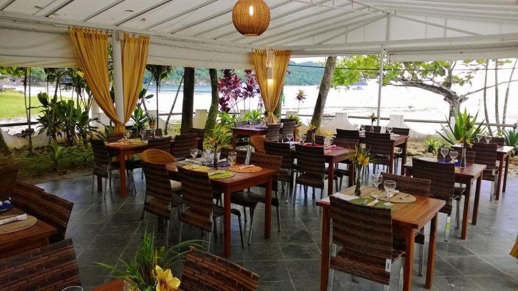 O hotel possui um bar/salão interno e um bar na praia, ambos oferecendo uma experiência relaxante com bebidas e petiscos. O bar interno é um ponto de encontro agradável ao fim da tarde ou à noite, com atmosfera acolhedora após um dia de passeio.