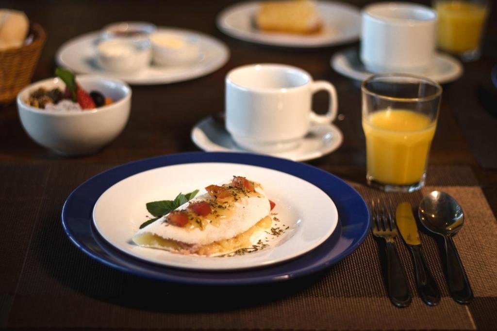 A refeição costuma ser em estilo buffet com itens selecionados, incluindo pães artesanais, bolos caseiros, frutas frescas, frios, queijos, iogurtes, cereais e sucos naturais, além de café, leite e chás.