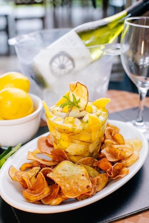 O cardápio reúne preparações contemporâneas com influência da culinária brasileira e mediterrânea, destacando frutos do mar, carnes selecionadas, massas e opções vegetarianas, sempre com apresentação cuidadosa e ingredientes frescos.