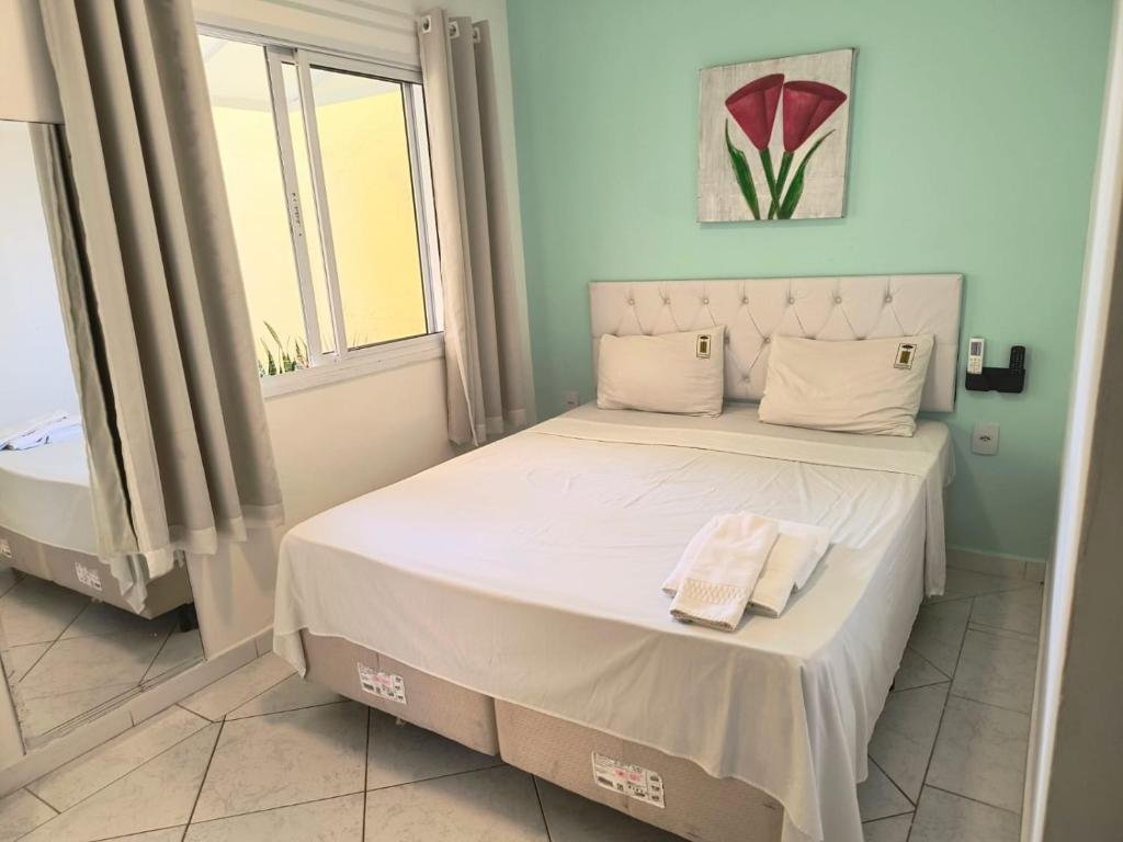 As acomodações duplas do Jequitibá Hotel, em Guarujá, são indicadas para até duas pessoas e apresentam estrutura simples, porém funcional para estadias curtas. Os quartos contam com cama de casal, frigobar, ar-condicionado, TV de tela plana e itens básicos de higiene, além de banheiro privativo com chuveiro. Em algumas unidades é possível apreciar vista para o mar ou para a piscina, reforçando a proximidade com a Praia da Enseada e o caráter praiano do empreendimento.