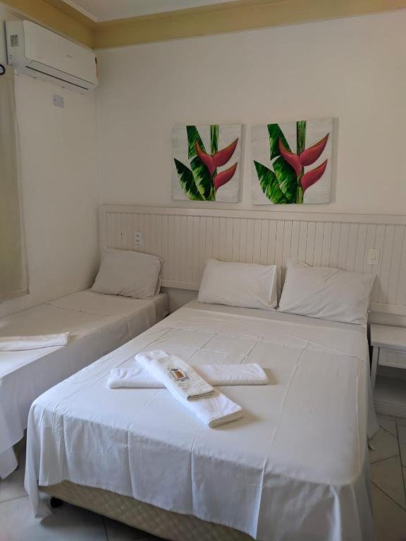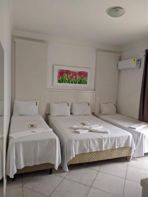 Voltados a pequenos grupos ou famílias, os quartos triplos acomodam até três hóspedes e mantêm a mesma proposta de conforto essencial do hotel. A estrutura inclui frigobar, ar-condicionado, televisão, produtos de higiene e banheiro privativo, garantindo praticidade durante a permanência. Assim como nas demais categorias, algumas unidades oferecem vista para o mar ou para a área da piscina, valorizando a experiência de hospedagem próxima à praia.