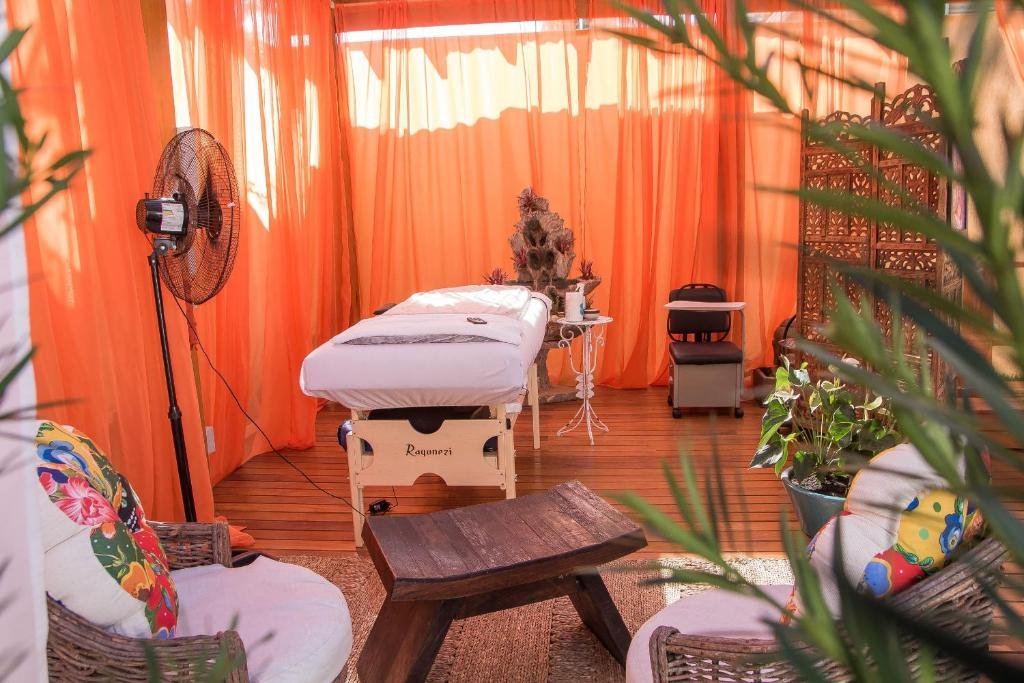 O spa oferece sessões de relaxamento e diversos cuidados pessoais, incluindo massagens, tratamentos de beleza, manicure, pedicure e outras experiências voltadas ao equilíbrio físico e mental. Há ainda áreas dedicadas à meditação e relaxamento, reforçando a proposta de descanso completo durante a hospedagem. Esses serviços complementam a atmosfera acolhedora da pousada e atendem hóspedes que buscam momentos de tranquilidade além do contato com o mar.