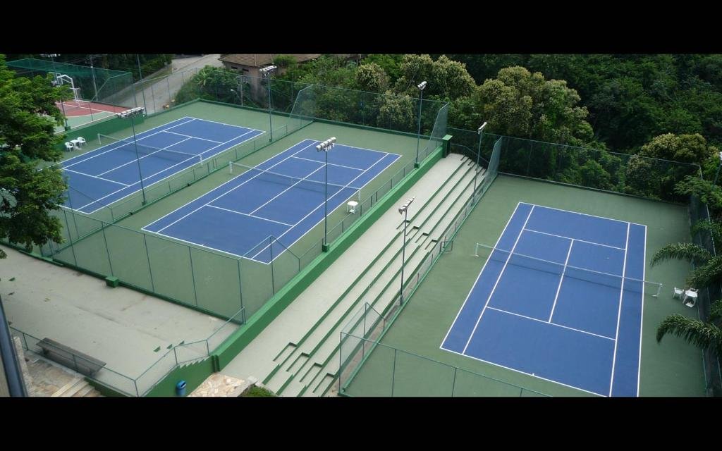 Para quem gosta de praticar esportes, o resort oferece várias instalações esportivas, incluindo três quadras de tênis, quadra poliesportiva e áreas para outras modalidades, além de espaços voltados para atividades recreativas.