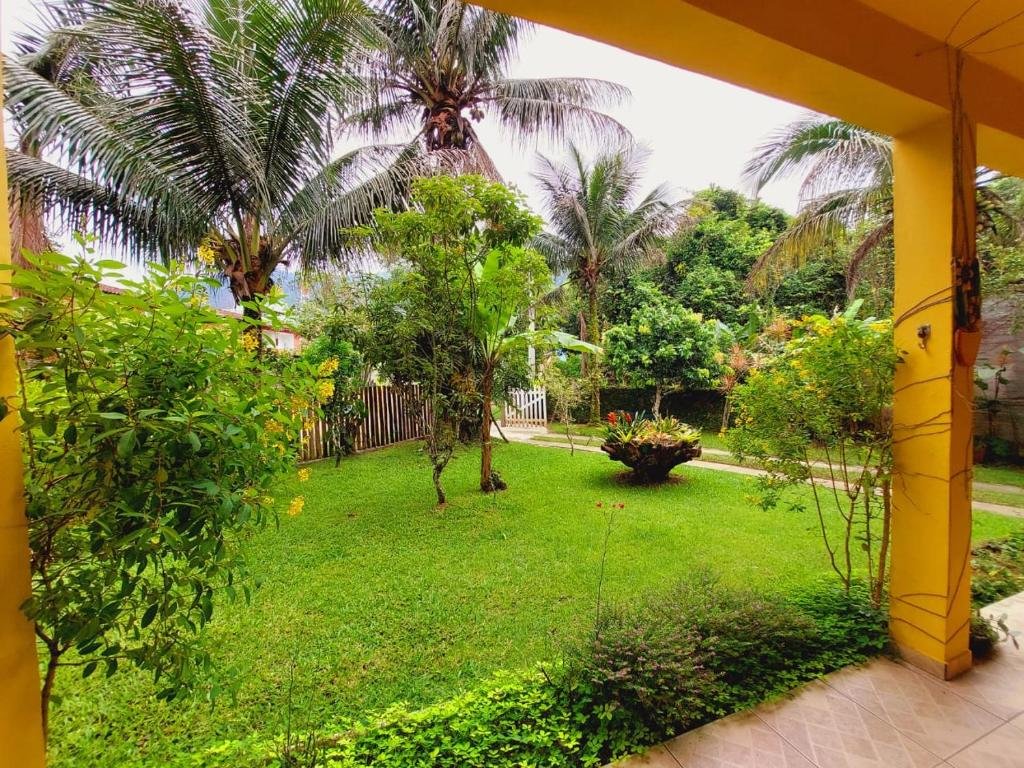 A pousada possui um amplo jardim cercado por natureza, com vegetação nativa que cria um ambiente tranquilo e convidativo ao descanso. O espaço externo é ideal para relaxar ao som dos pássaros, caminhar entre as plantas ou simplesmente apreciar o clima tropical da Praia do Lázaro, proporcionando uma sensação de imersão na natureza.
