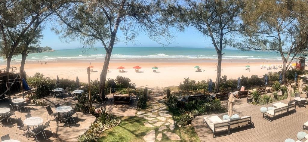 A estrutura de hospedagem inclui quartos confortáveis e bem equipados, alguns com varanda privativa e vista para o mar, todos com comodidades como ar-condicionado, TV e frigobar. Nas áreas de lazer, os hóspedes podem aproveitar piscina ao ar livre com acesso direto à praia, sauna, academia, solário e espaços de descanso, além de serviços de massagem e atividades esportivas no mar, como surf e stand up paddle.