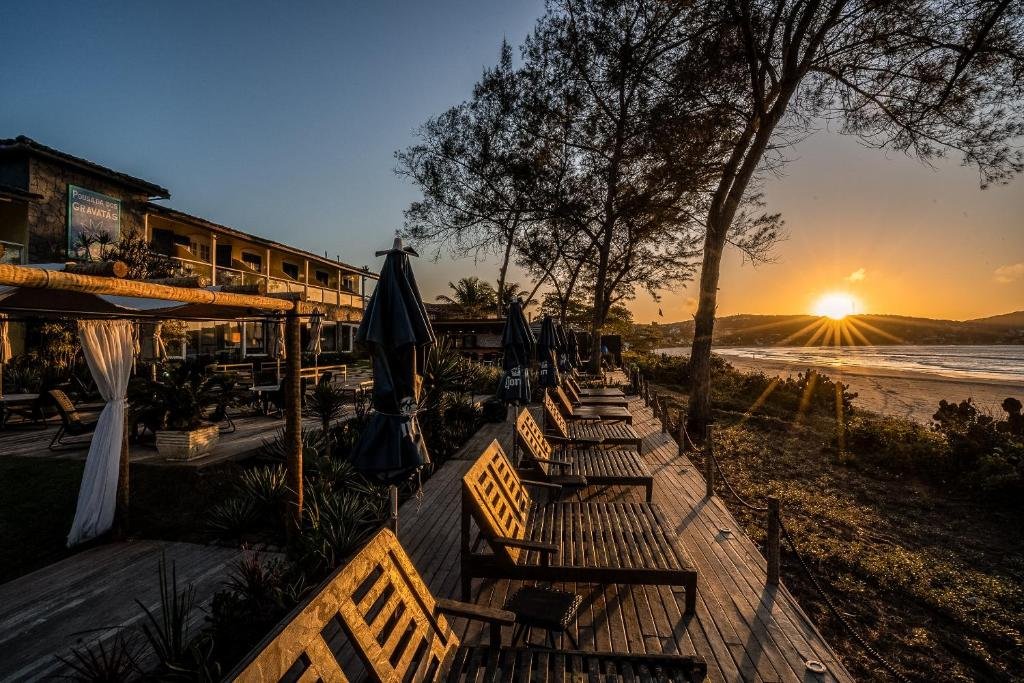 O hotel também dispõe de restaurantes e bar de praia, proporcionando refeições e bebidas com vista para o oceano. Com atmosfera descontraída e localização privilegiada “pé na areia”, a pousada combina conforto, lazer e contato direto com a natureza em uma das regiões mais valorizadas de Búzios.