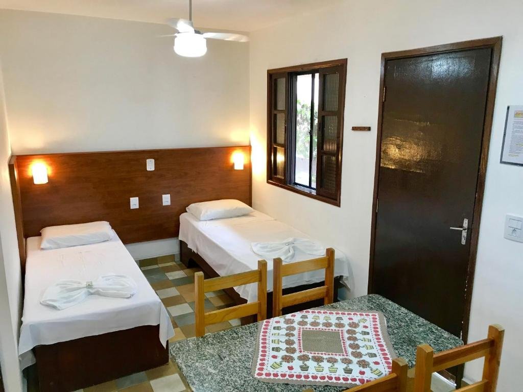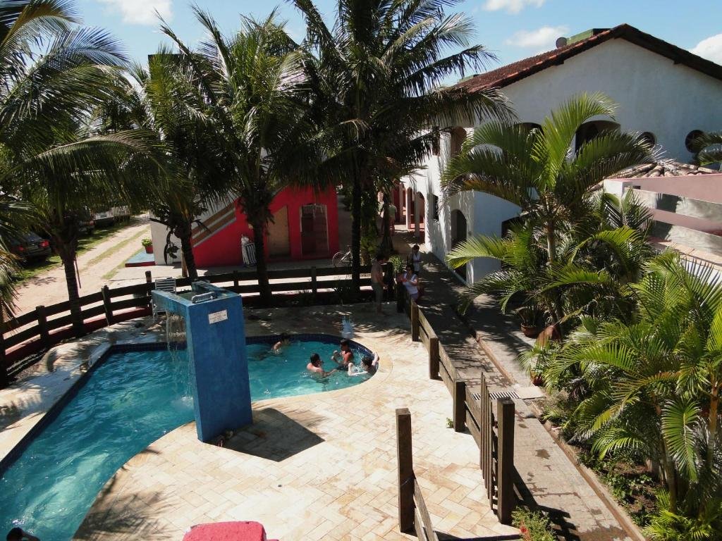 A pousada oferece suítes e flats com banheiro privativo, ar-condicionado, TV e frigobar. Conta com piscina com cascata, restaurante com culinária regional, mirante com vista para o mar, Wi-Fi, estacionamento interno e café da manhã incluso. É uma opção aconchegante e bem localizada para quem deseja aproveitar a praia e as belezas naturais da região.