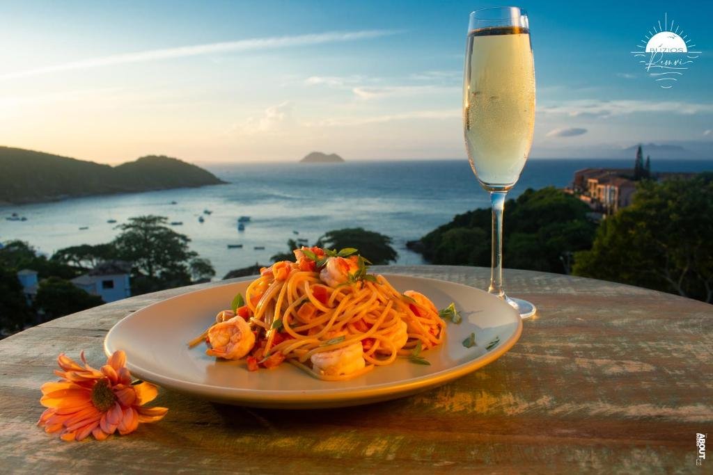 O restaurante busca combinar praticidade e conforto para quem prefere realizar as refeições sem sair da hospedagem, especialmente após um dia de praia ou passeios por Búzios. O espaço apresenta cardápio variado para almoço, lanches e jantar, com opções que incluem pratos de carnes, massas e acompanhamentos, além de sugestões especiais do chef e sobremesas.