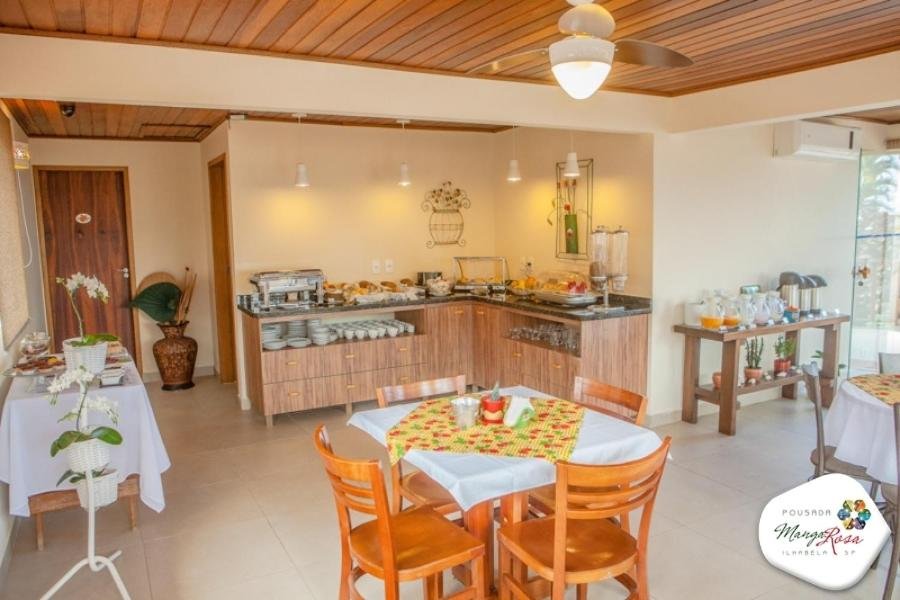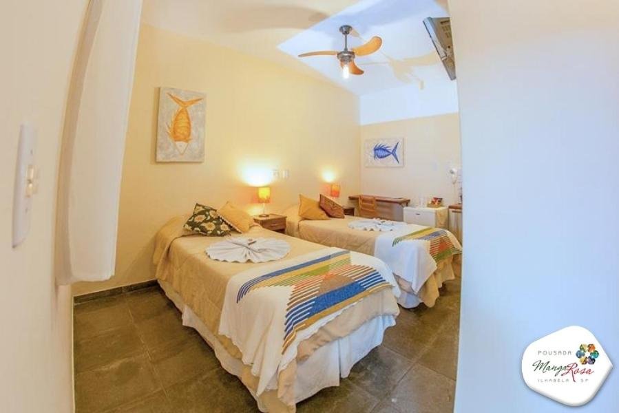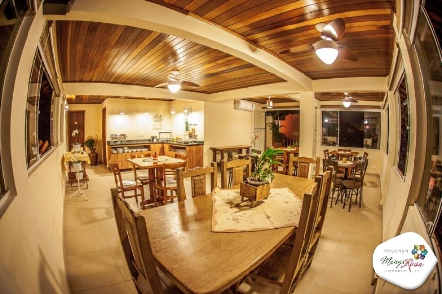 A Pousada Manga Rosa fica no Centro de Ilhabela, próximo de restaurantes, lojas e pontos turísticos, permitindo explorar a região a pé. A estrutura inclui piscina com bar, spa, áreas de convivência com livros, além de um café da tarde oferecido aos hóspedes. Os quartos variam entre Standard, Luxo e Família, todos equipados com ar-condicionado, frigobar, TV, Wi-Fi e camas confortáveis. O café da manhã é servido em estilo buffet, com itens frescos e caseiros. A pousada também disponibiliza estacionamento gratuito, recepção 24h e limpeza diária, sendo muito elogiada pela localização privilegiada, atendimento atencioso e ambiente tranquilo. É uma excelente opção para quem busca conforto e praticidade no coração de Ilhabela.