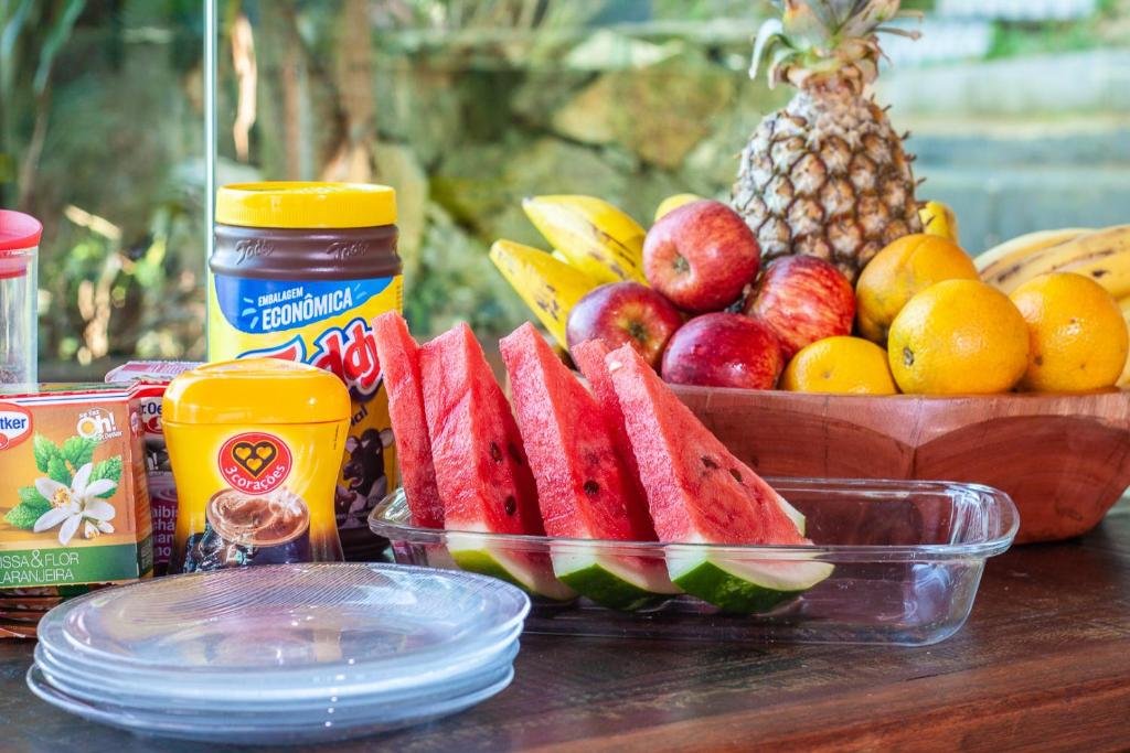 O café da manhã é incluído na diária, trata-se de um buffet matinal servido todas as manhãs em área comum da pousada, onde os visitantes encontram uma variedade de itens frescos e tradicionais para começar o dia com energia antes de explorar a ilha ou praticar atividades ao ar livre.