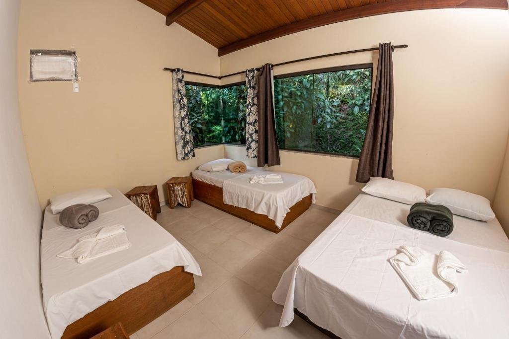 Localizada num cenário natural exuberante entre o mar e a vegetação tropical da Costa Verde, a pousada combina conforto com vistas panorâmicas do oceano e da paisagem insular. As acomodações variam de suítes aconchegantes com varanda e vista para o mar a casas e bangalôs espaçosos ideais para famílias ou grupos de amigos, todos equipados com Wi-Fi, ar-condicionado, TV e eletrodomésticos, proporcionando uma estadia confortável imersa na natureza.