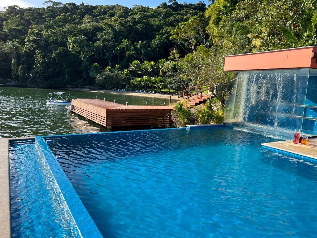 A Pousada Mangue Seco Angra dispõe de uma piscina ao ar livre com borda infinita, proporcionando um ambiente relaxante com vista direta para o mar e o cenário natural ao redor. É um espaço convidativo para banhos de sol, descanso ou lazer em família, perfeito para aproveitar o clima tropical da Ilha da Barra. Ao lado da piscina, muitas vezes há mesas e áreas de convivência que permitem socializar ou simplesmente contemplar o visual costeiro. Essa estrutura é muito elogiada por hóspedes pela sua estética e integração com a paisagem natural, contribuindo para momentos tranquilos de descanso e contemplação.