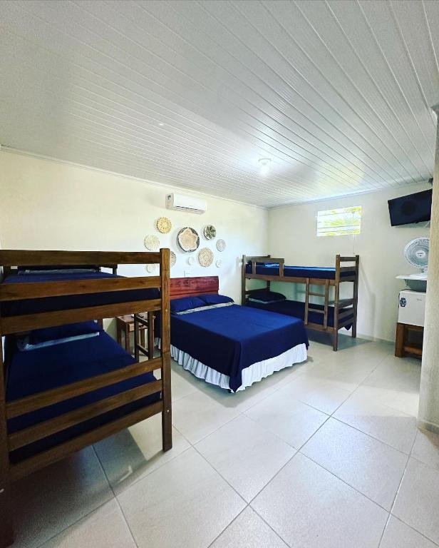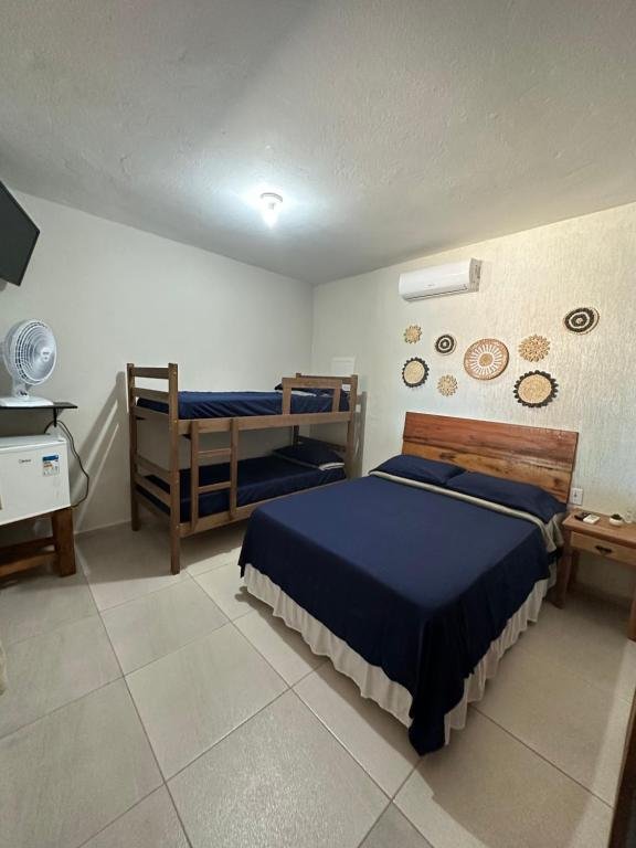 A Suíte grande com vista para o mar é perfeita para grupos maiores ou famílias de até 6 pessoas, contando com três camas distribuídas de forma funcional e confortável. A unidade oferece Wi-Fi, ar-condicionado, vista panorâmica do oceano e acesso direto à areia, criando uma experiência praiana imersiva. Com o café da manhã incluso e estacionamento disponível, essa acomodação proporciona uma estadia prática e acolhedora em um cenário natural deslumbrante.