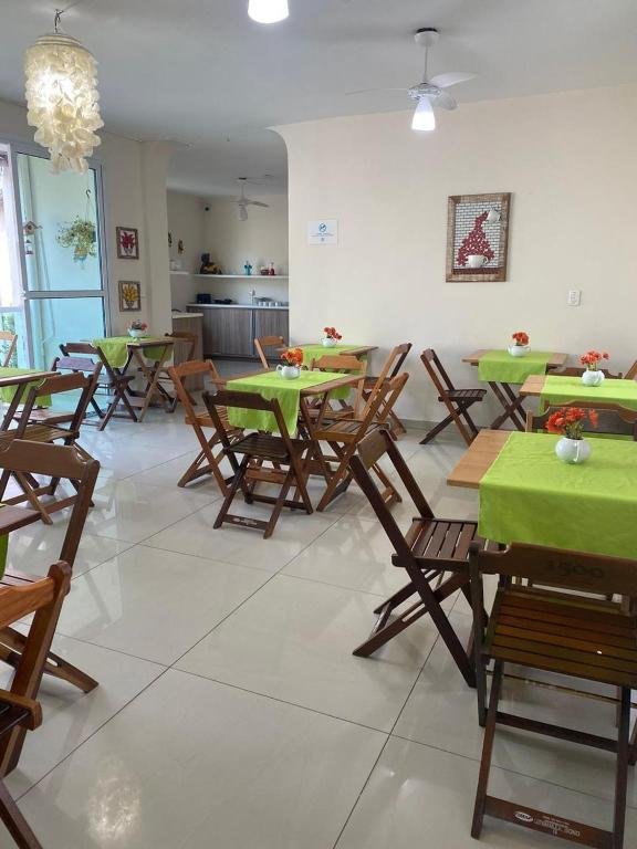 A estrutura de hospedagem conta com suítes aconchegantes equipadas com ar-condicionado, TV LED, frigobar, cama box, secador de cabelo e Wi-Fi, garantindo conforto durante a estadia. Entre as áreas de lazer e conveniência destacam-se piscina ao ar livre, churrasqueira, sala de jogos, jardim, spa com massagens e espaço zen com vista para o mar, além de café da manhã incluso, estacionamento e política pet friendly para pequenos animais.