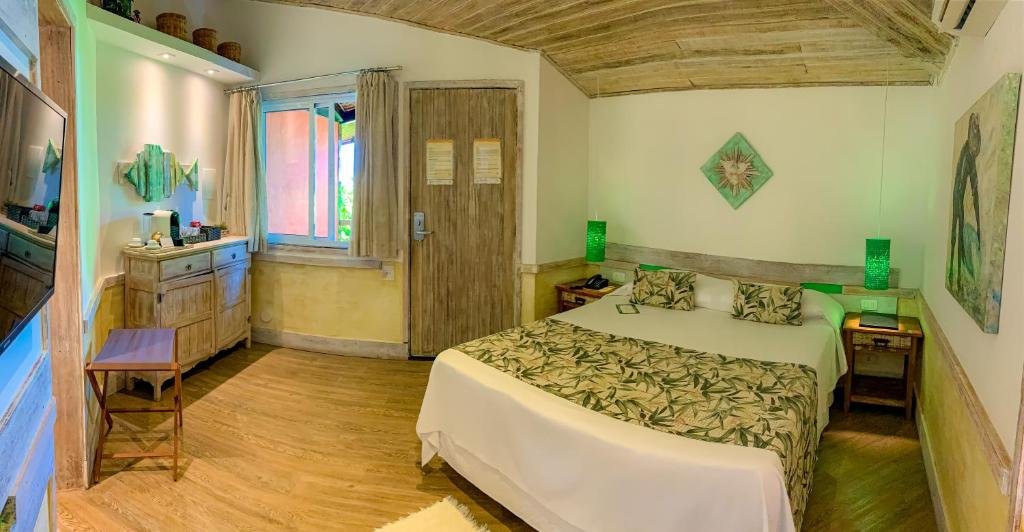 Os Bangalôs Standard também acomodam até 2 pessoas e oferecem um ambiente tranquilo e arejado, com ar-condicionado, Smart TV, frigobar, banheiro privativo e varanda. Sem vista direta para o mar, ainda assim permitem fácil acesso às instalações de lazer da pousada, como piscinas, sauna e bar, e mantêm o estilo acolhedor e confortável ideal para casais ou viajantes em busca de uma estadia relaxante em Ilhabela.