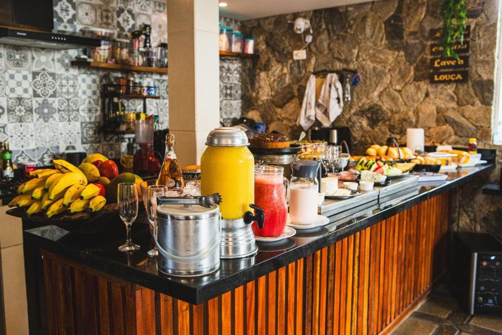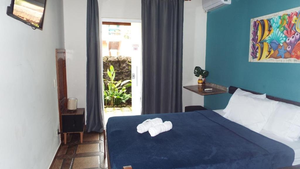 A pousada oferece suítes confortáveis com ar-condicionado, TV, frigobar e banheiro privativo, sendo que algumas acomodações possuem varanda ou vista para o mar. Também conta com piscina ao ar livre, jardim, lounge compartilhado, churrasqueira, café da manhã e Wi-Fi gratuito em todas as áreas.