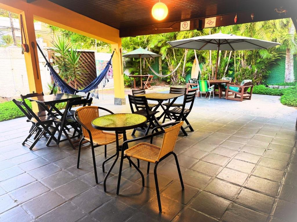 Conta com um agradável jardim e espaços ao ar livre, que funcionam como áreas de descanso e convivência entre os hóspedes. Esses ambientes são arborizados e bem cuidados, criando uma atmosfera tranquila e relaxante, ideal para ler, conversar ou simplesmente aproveitar o clima litorâneo.