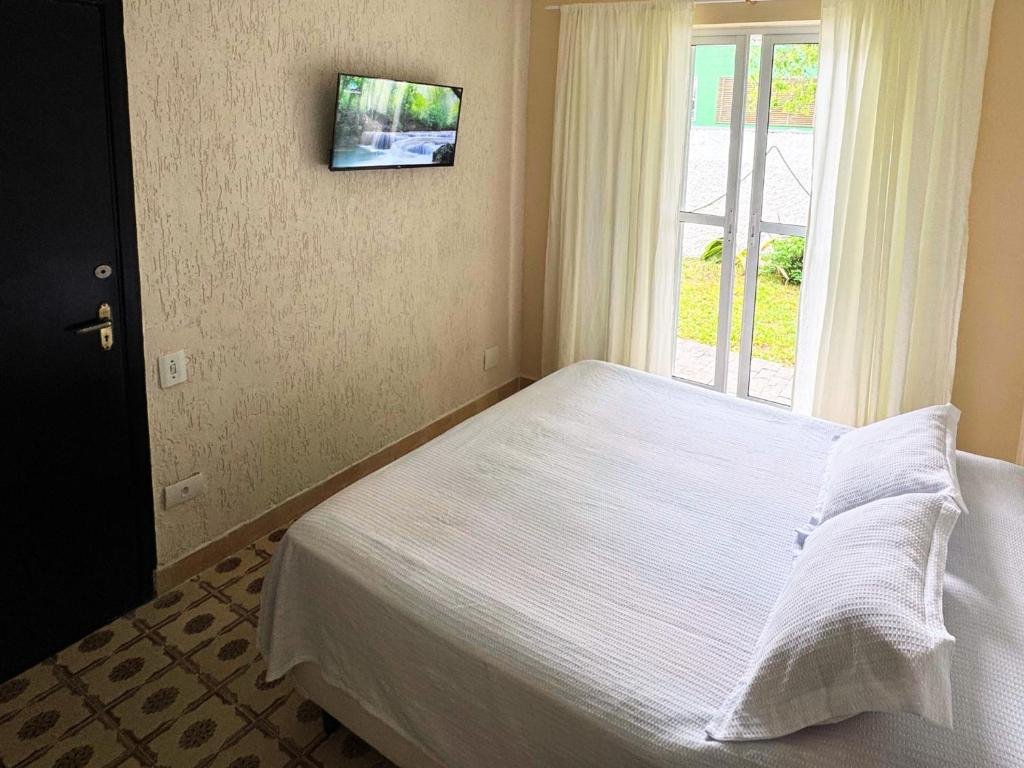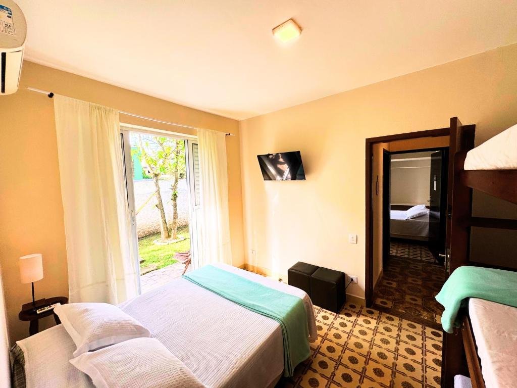 Quarto Família com Banheiro – Indicado para até 3 pessoas, esse tipo de acomodação é ideal para pequenos grupos ou famílias. Geralmente possui 1 cama de casal e 1 cama de solteiro, além de banheiro privativo, ar-condicionado, TV e acesso ao Wi-Fi. O espaço é mais amplo que as demais unidades e oferece conforto adicional para quem viaja acompanhado, mantendo a mesma estrutura básica de serviços da hospedagem.