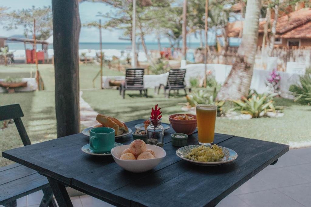 A pousada conta com áreas de jardim e espaços ao ar livre com móveis de descanso, que proporcionam momentos de relaxamento entre um passeio e outro. Esses ambientes são ideais para ler, bater papo ou simplesmente apreciar a brisa marítima e a paisagem natural ao redor.