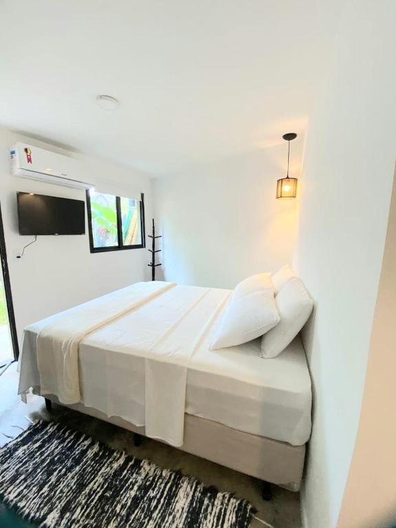 Algumas unidades do Yabás Praia acomodam até 3 a 4 pessoas, ideais para famílias ou grupos pequenos. Esses quartos mantêm as mesmas comodidades — ar-condicionado, TV de tela plana, Wi-Fi gratuito e banheiro privativo — com espaço adicional para camas extras ou configuração flexível. Perfeitos para quem deseja aproveitar a praia em grupo sem abrir mão de conforto, essas acomodações combinam praticidade com localização estratégica a poucos passos da areia e das áreas naturais da região de Sapê.